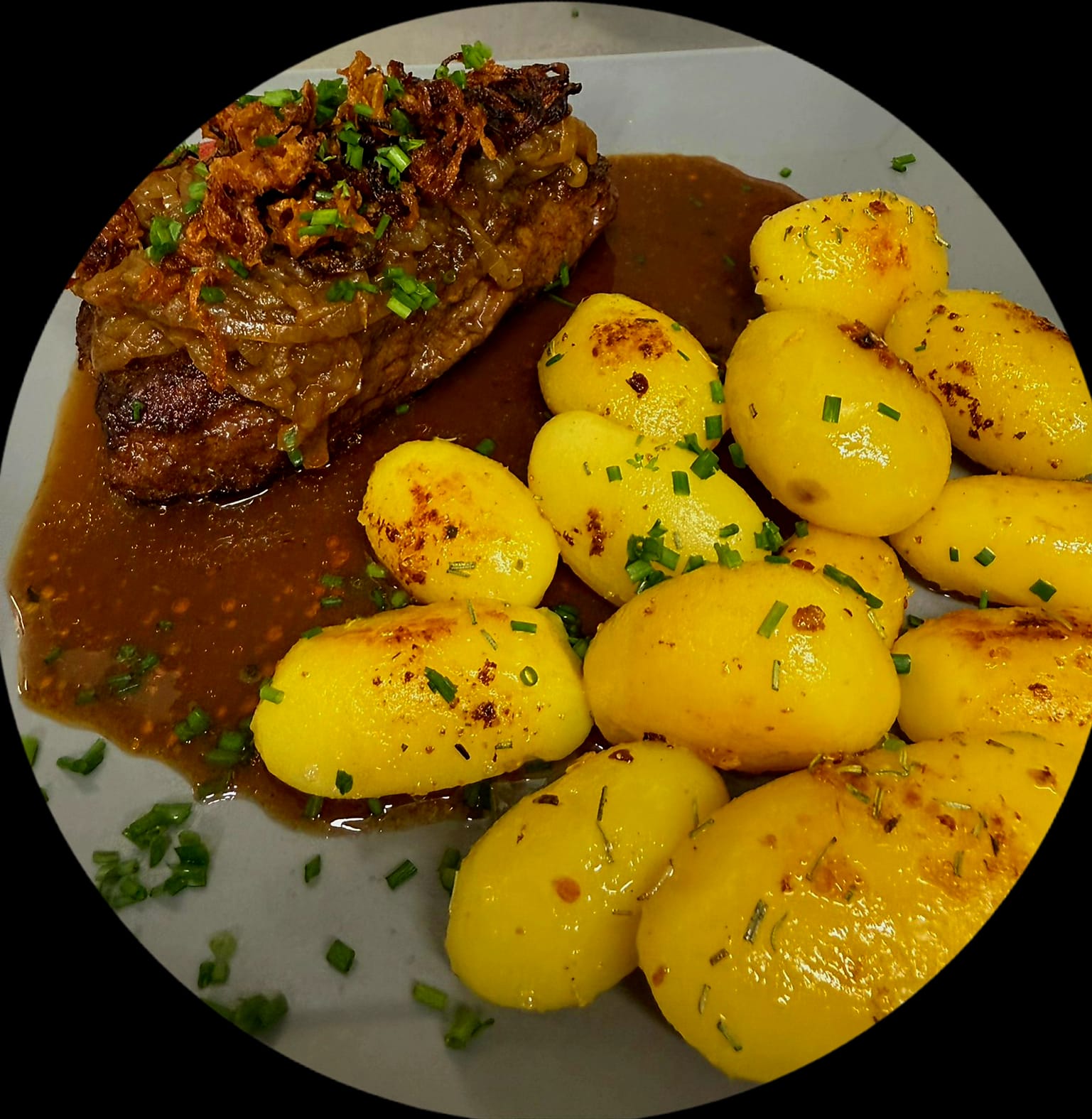 auf unserer Karte. Dazu gibt es zu jedem Schnitzel kostenlos einen "Absacker"